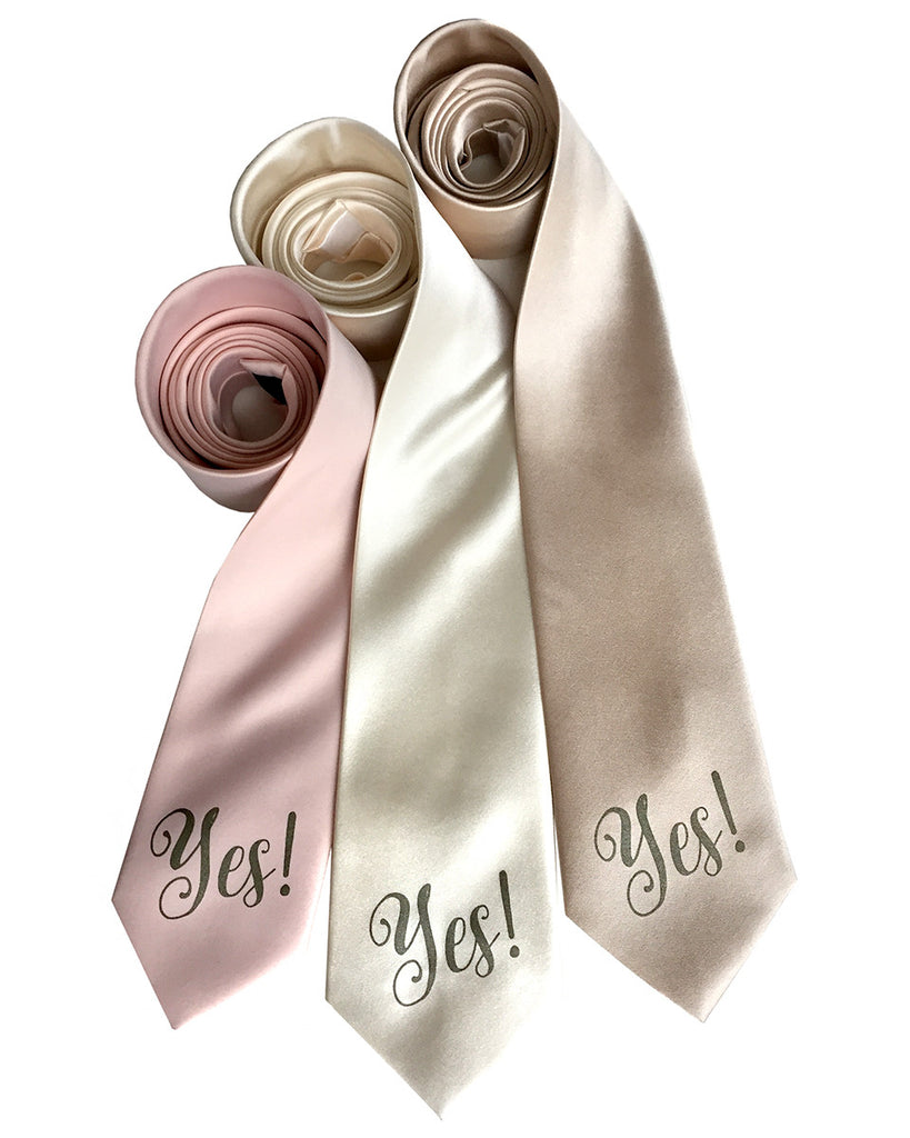 Yes! Print Necktie. "Yes" printed tie. Perfect when used as an engagement party or wedding day necktie. Fun and interactive at any time! Let your heartfelt answer speak for itself. Affirm the positive. Let your contagious good attitude shine!