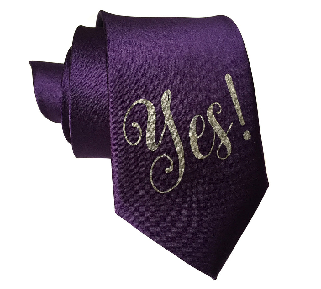 Yes! Print Silk Necktie. "Yes" printed tie. Perfect when used as an engagement party or wedding day necktie. Fun and interactive at any time! Let your heartfelt answer speak for itself. Affirm the positive. Let your contagious good attitude shine!