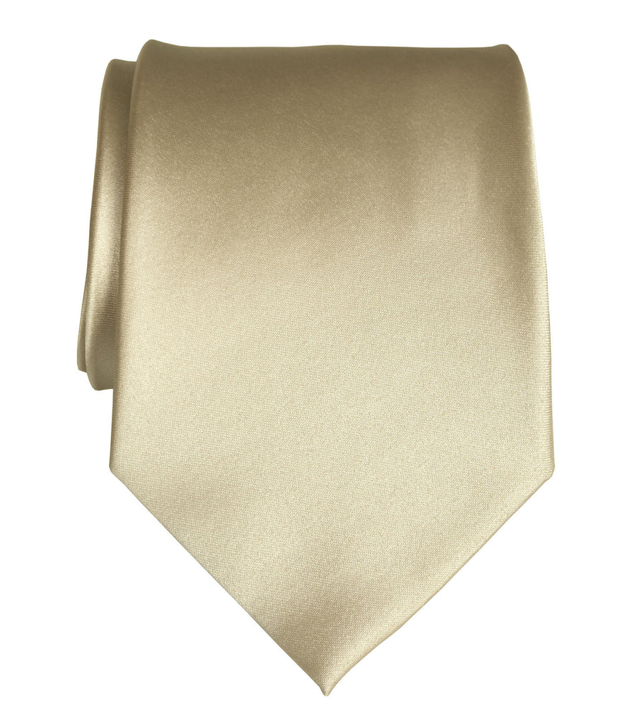 Champagne Necktie. Light Tan Solid Color Satin Finish Tie, No Print