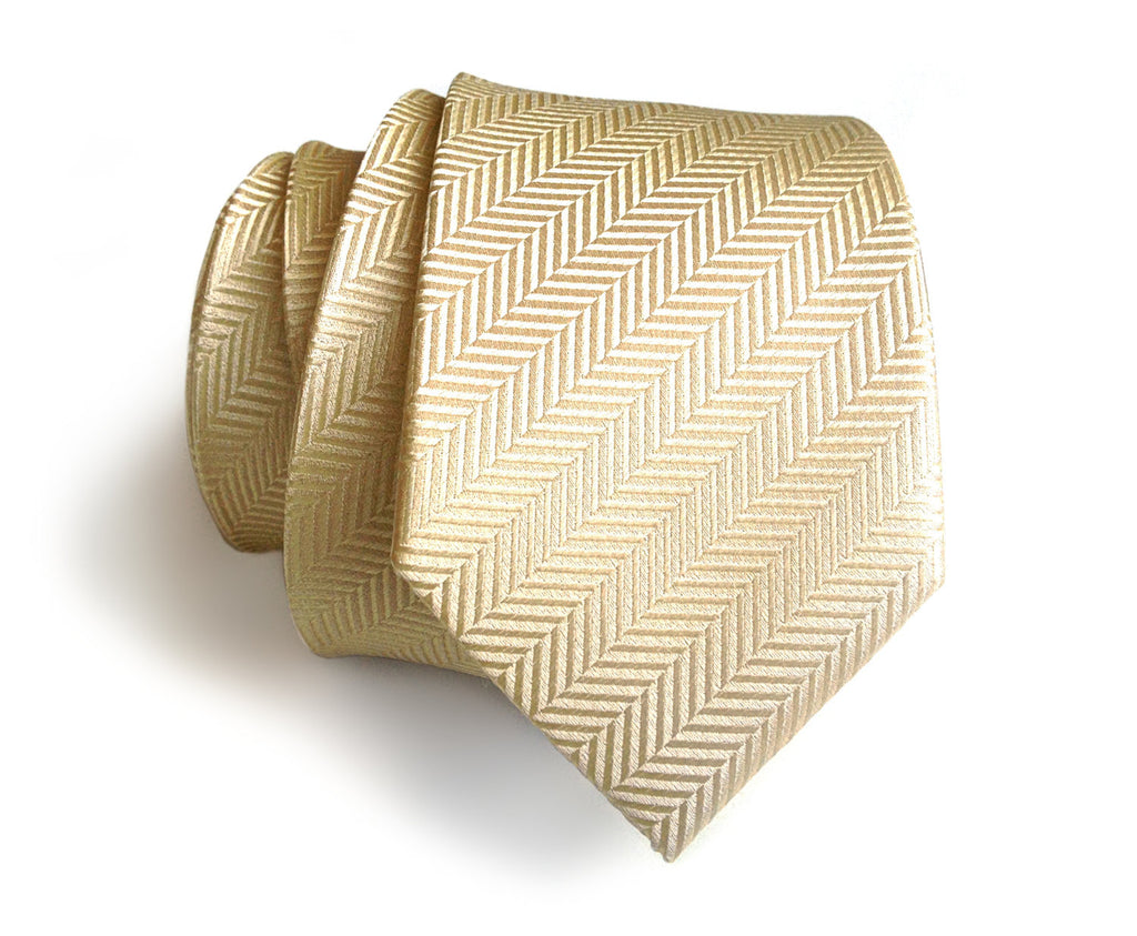 Cream silk necktie - woven herringbone silk. These come in one perfect "Goldilocks" middle tie size: our narrow, modern slim cut. Not too skinny, not too wide. Just right!