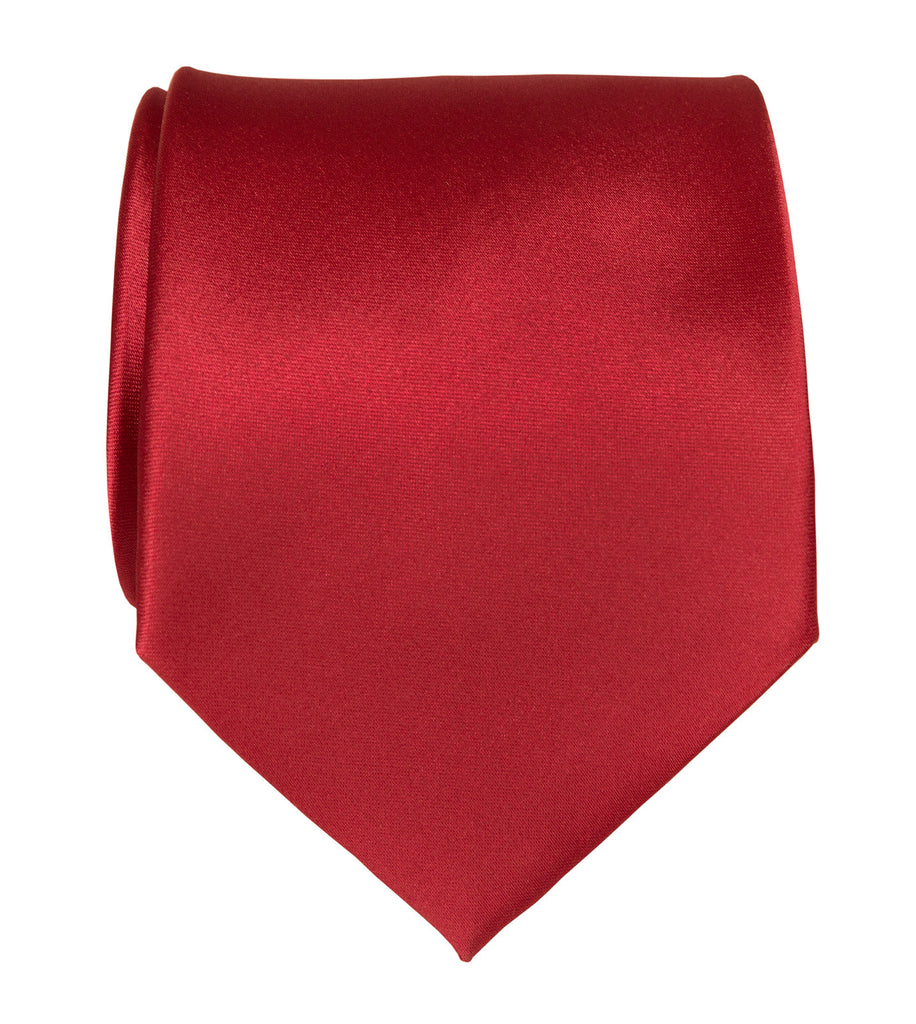 Crimson Red Necktie. Solid Color Satin Finish Tie, No Print