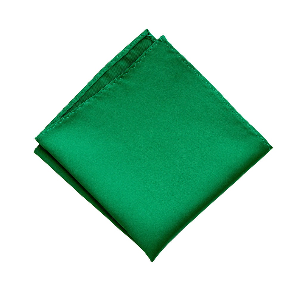 Kelly Green Pocket Square. Medium Green Solid Color Satin Finish, No Print