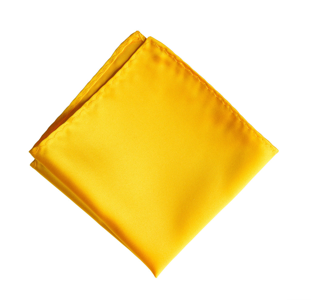 Marigold Pocket Square: Medium Yellow solid color satin finish men's pocket square with no print. Perfect for any formal occasion! How can a medium yellow pocket square possibly be hard to find? Well, those elusive hankies sure can be. Fear not, your search is over, we have everything here just for you! Plus, our prices are kind to you and your pocket.