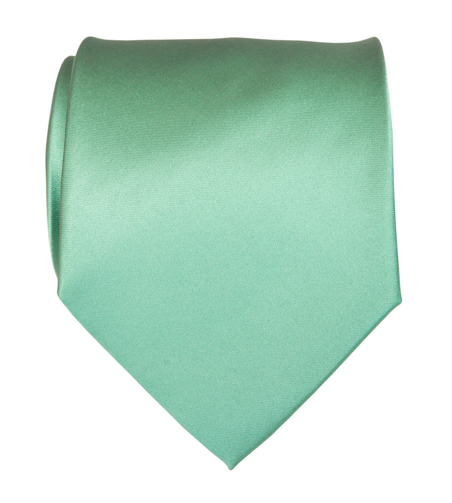 Mint Green Necktie. Solid Color Satin Finish Tie, No Print