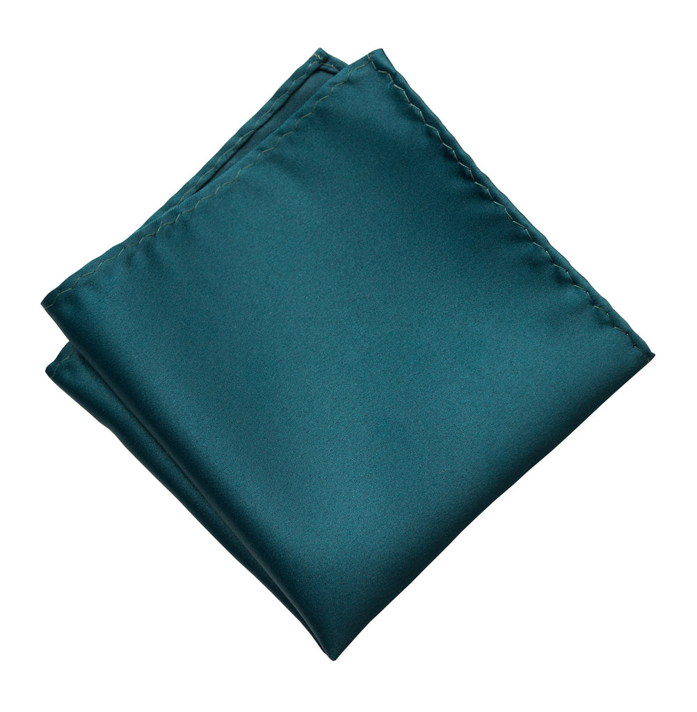 Peacock Blue Pocket Square. Dark Blue Solid Color Satin Finish, No Print
