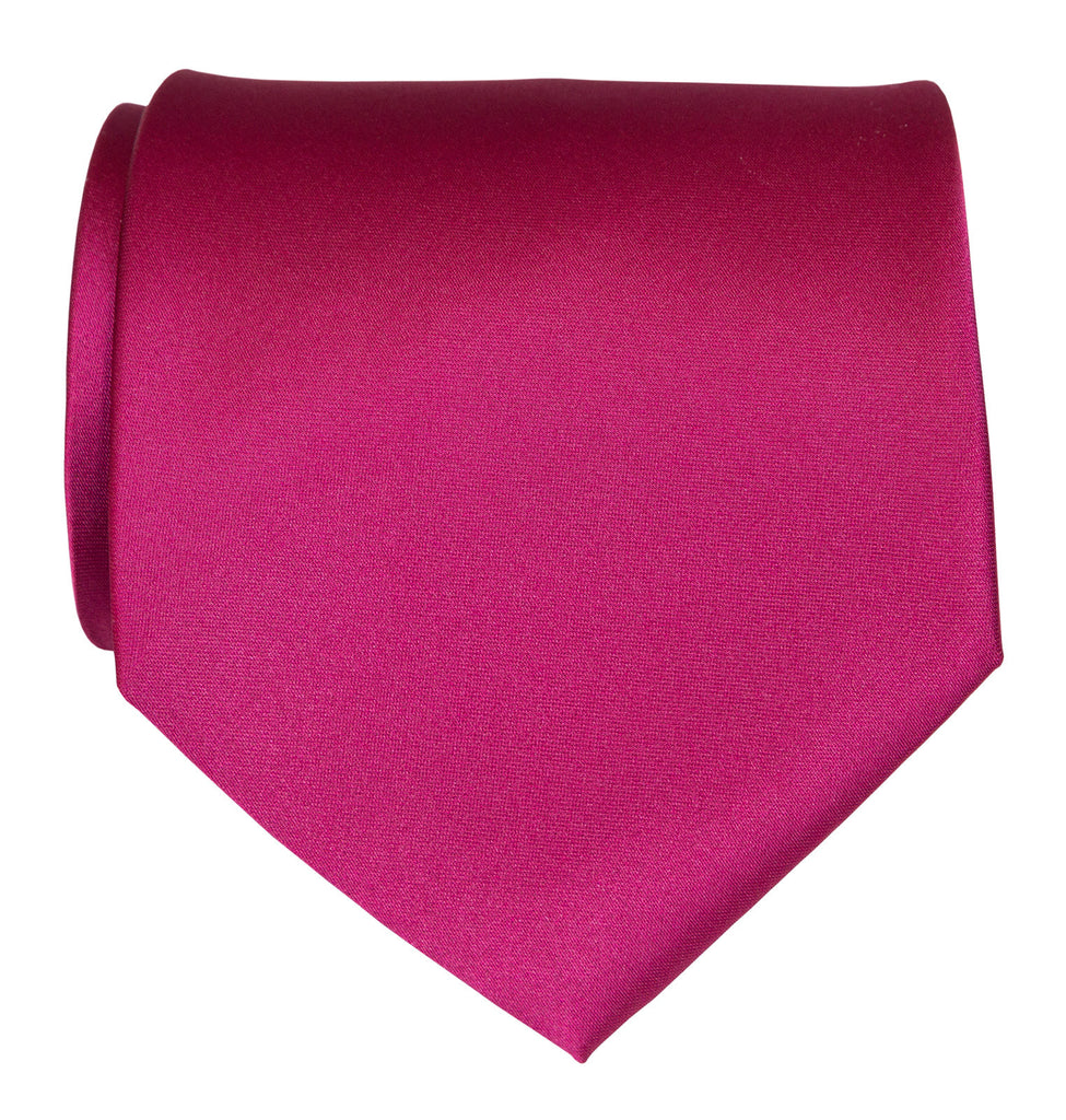 Raspberry Necktie: Solid Color Satin Finish Tie, No Print. Perfect for any formal occasion, or for when you need a plain, red-purple necktie in your wardrobe. How can this possibly be hard to find? (Well it is.) But fear not, because we have it! Ties are bias cut, hand rolled, and hand sewn with a hidden slip stitch, ensuring a perfect knot every time.