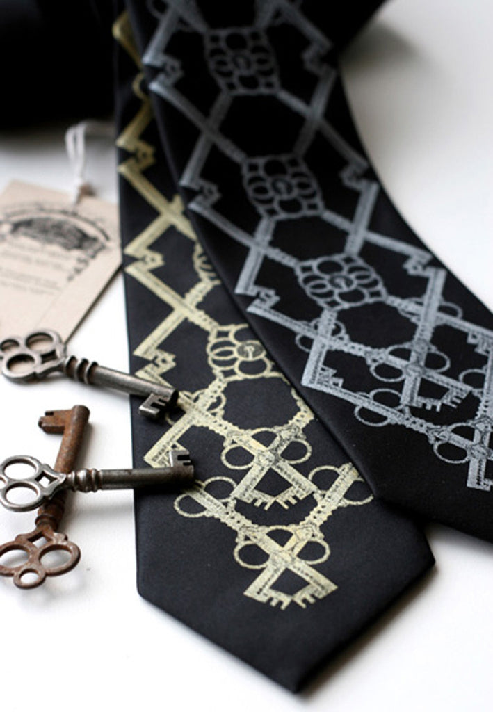 Skeleton Keys Necktie "Argyle Key" microfiber tie. An ornate, Victorian skeleton key has been flipped, repeated and pattered in the likeness of tartan. Original illustration.