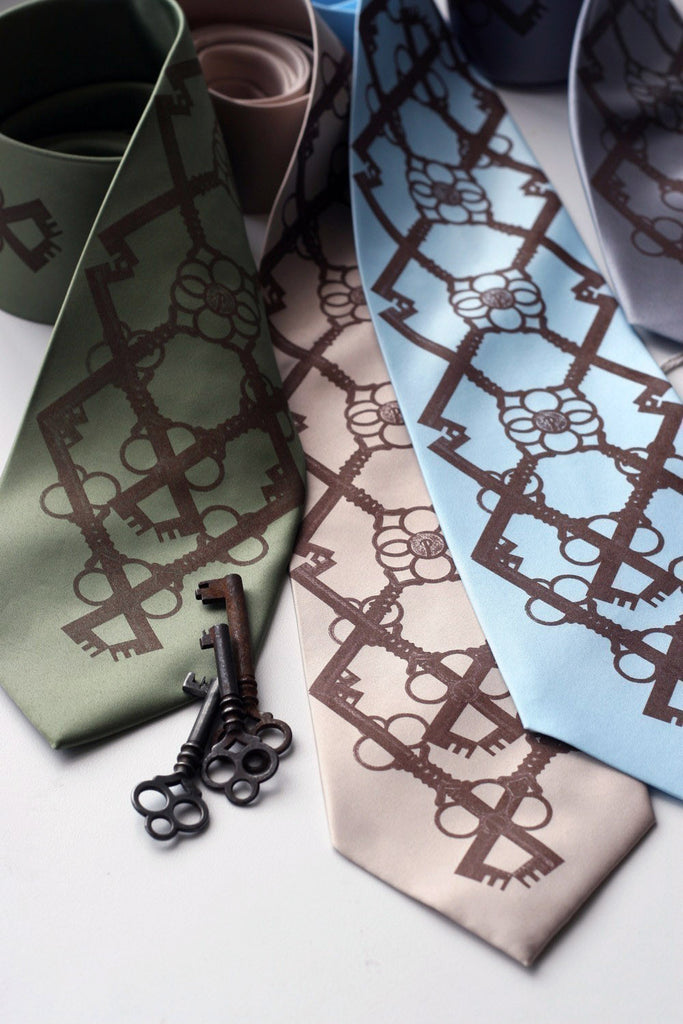Skeleton Keys Silk Tie "Argyle Key" necktie. An ornate, Victorian skeleton key has been flipped, repeated and pattered in the likeness of tartan. Original illustration.