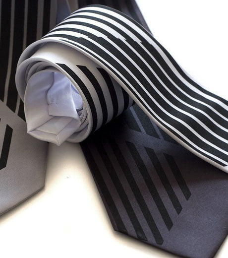 Broken blade stripe. A matte-knife inspired modern take on the simple, classic striped tie. Perfectly bold or understated (depending on your choice of colorway) - great for formal weddings or an attention-grabbing night out. Original illustration.