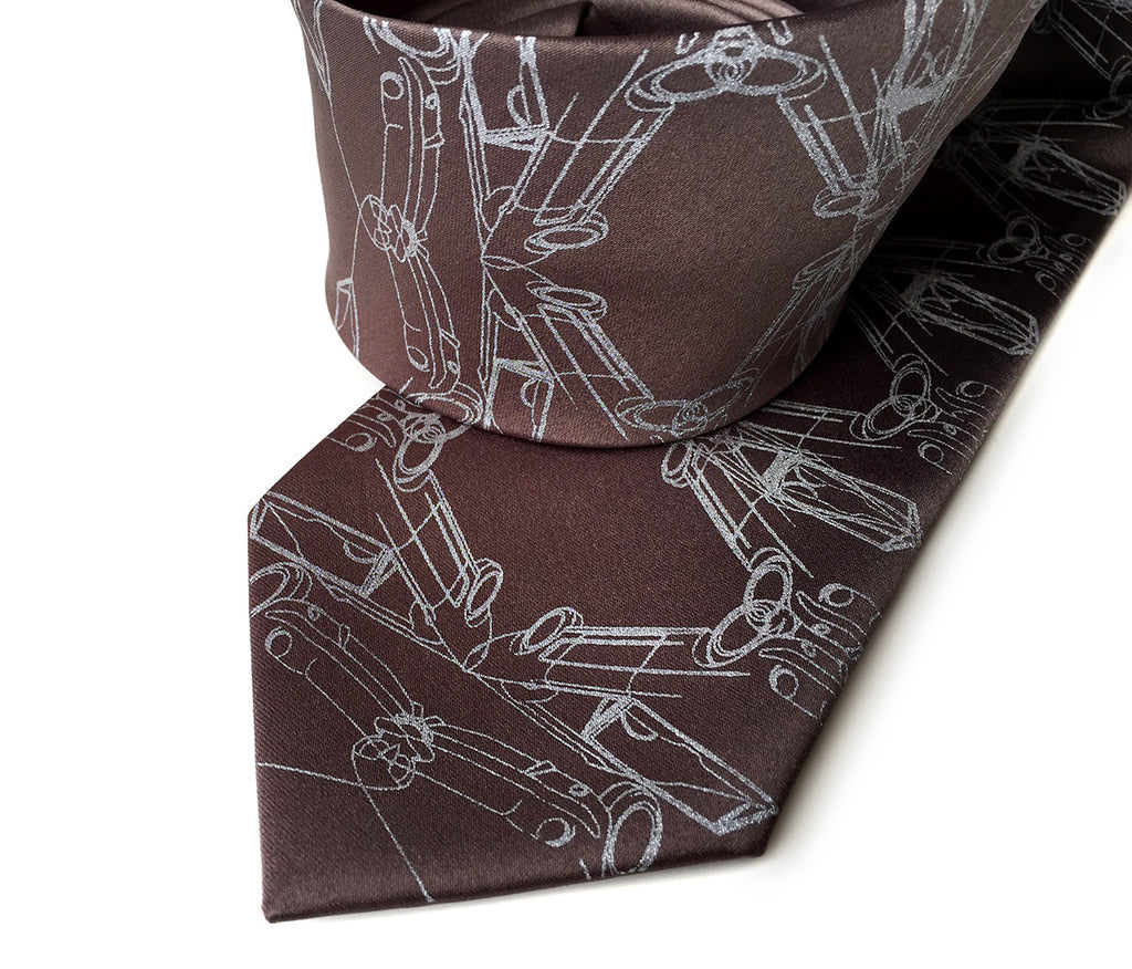 Cargyle Necktie. Classic Car Print Tie. Mustang-inspired argyle print necktie. We think may be just about the most elegant way to show your love for classic cars. Hand-drawn by us, then reflected and flipped - these technical drawings become a subtle argyle pattern perfect for automotive aficionados for even the most formal events!