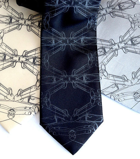 We think this may be just about the most elegant way to show your love for classic cars. Hand-drawn by us, then reflected and flipped - these technical drawings become a subtle argyle pattern perfect for automotive aficionados for even the most formal events! This version (1964) is inspired by the first-generation Ford Mustang convertibles. Original illustration.