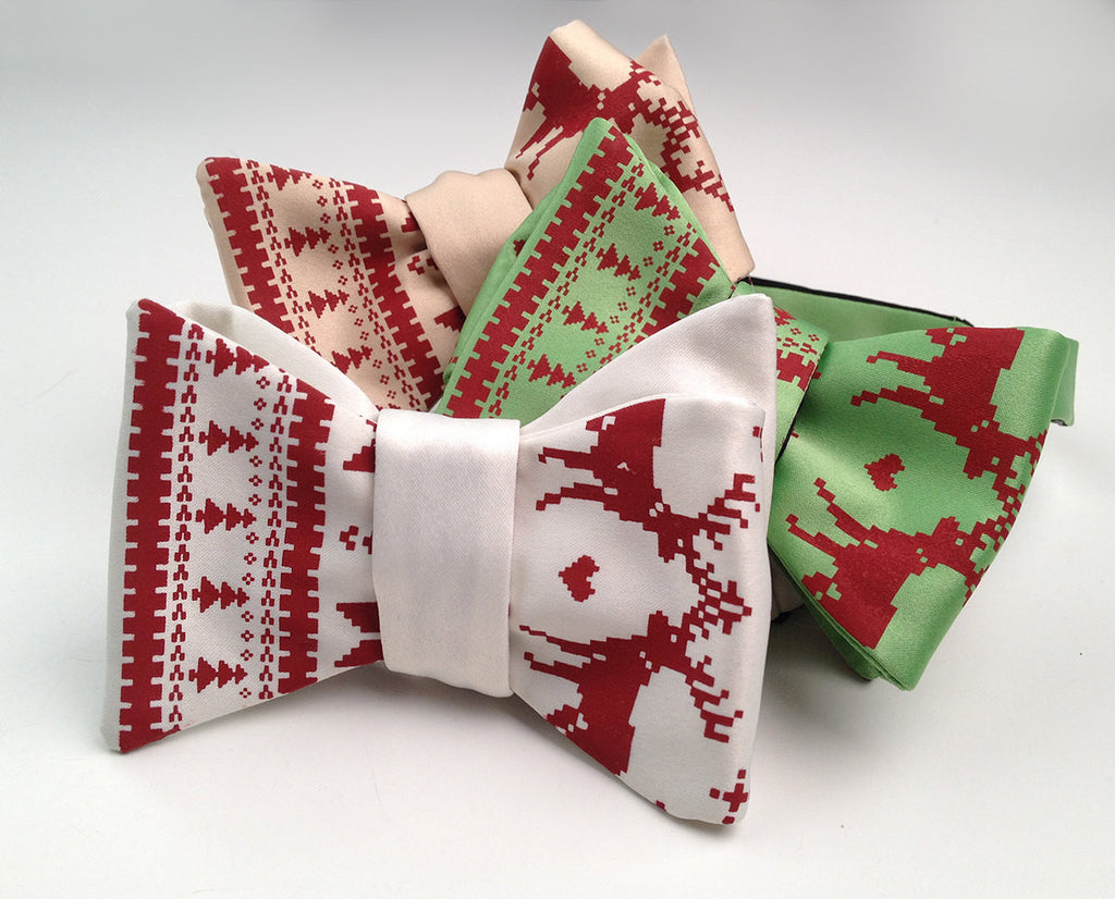 Christmas Sweater bow tie. Ugly Sweater Parties are all the rage, but sometimes you still need to wear a tie. Now you can take that unbridled joy and spirit with you at all times. Really feeling the season? Double up with a sweater and tie. Might lead to double the presents!