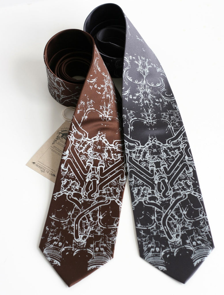 Exhaust Pipes tie. Exhaust System men's necktie. Car and motorcycle lovers unite! Our "Exhaust" motif is born from rearranged and tangled automotive exhaust system schematics. Perfect for automotive and motorcycle enthusiasts.