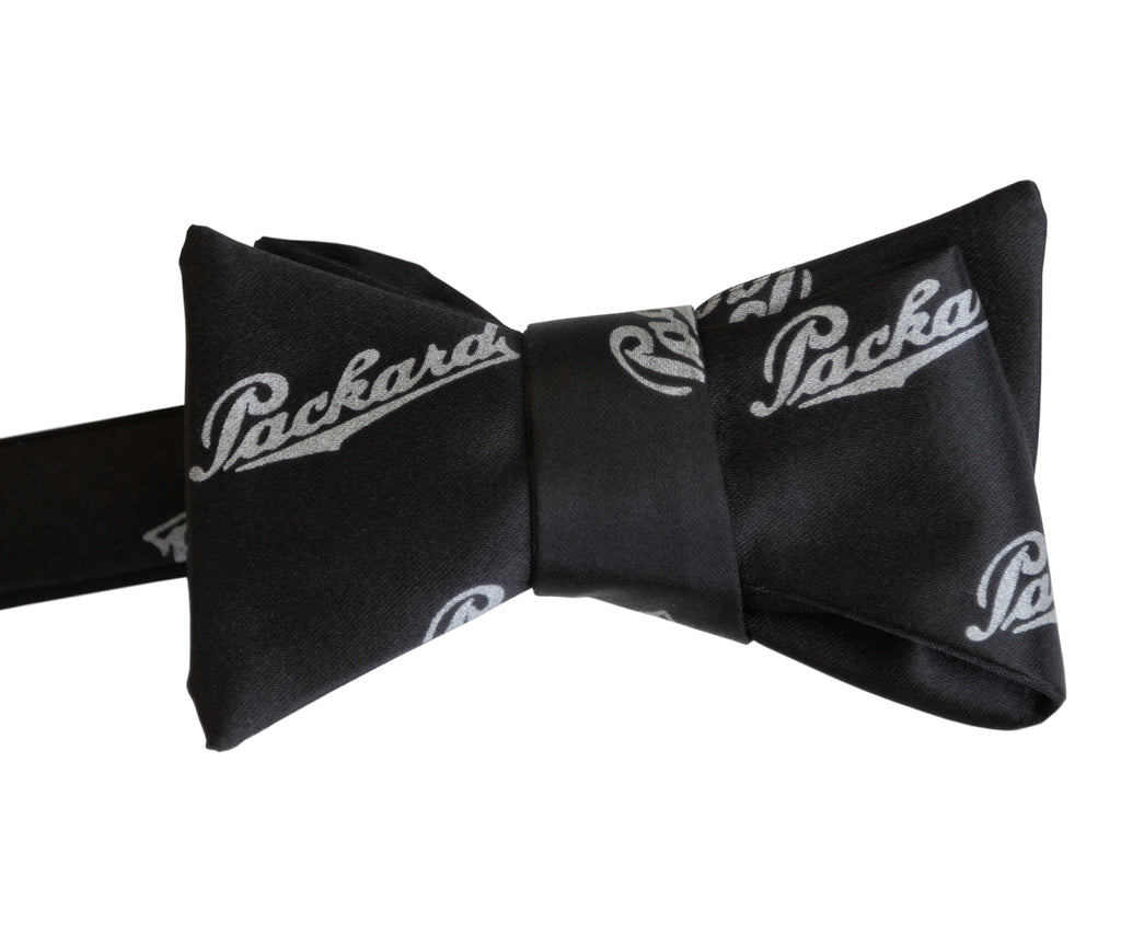 Packard Script Pattern Bow Tie, Detroit Car Tie. Founded in 1899, Packard Motor Car Company was a luxury automobile brand based in Detroit, Michigan, with the last being built in 1958. The shell of the Packard Plant still remains in Detroit and is one of the city's most explored and photographed abandoned structures. Show off your Motor City pride and love for all things vintage Detroit with our Packard Script Bow Tie!