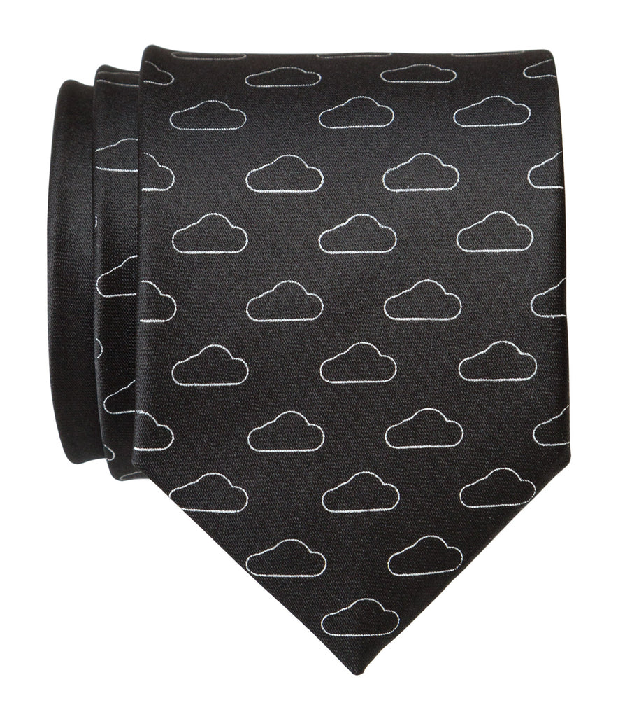 Cloud Print Necktie, Partly Cloudy Print Tie. Now you just need some happy little trees to go along with it! Head in the clouds? Who doesn't love staring at those big white puffs in the sky? Whether you work in cloud computing or forecast the real world cumulus, nimbostratus, or cirrus -- this print is perfect for any computer geek, weather buff or lover of Bob Ross!