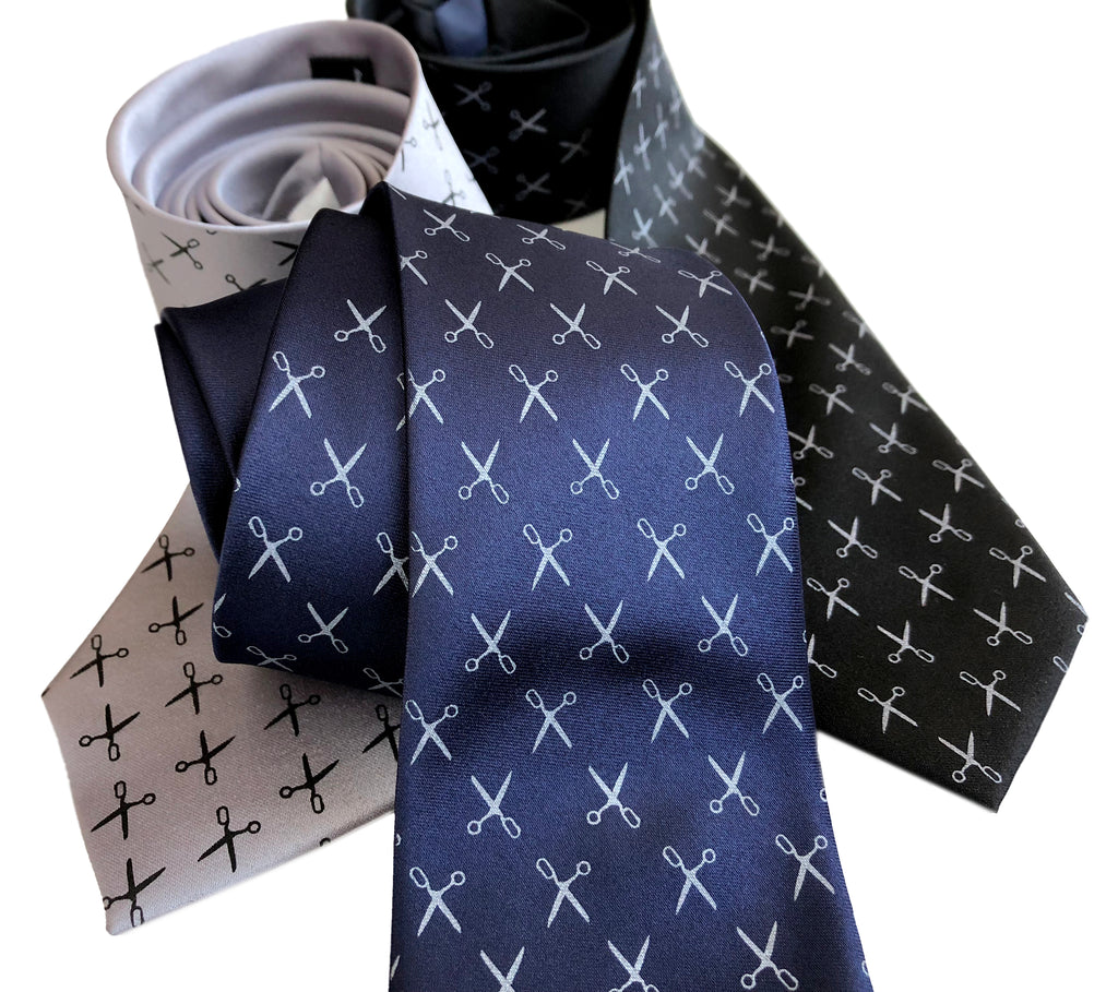 Scissors Print Necktie. Tiny scissors repeating pattern mens tie. Didn't your mom ever tell you not to run with scissors? Fear not, you can run with this tie on!