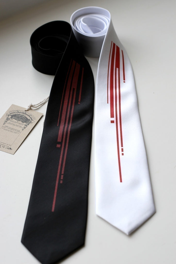 Strangle Silk Necktie. Digital blood drips tie. Feeling strangled by your 9-5? Understated digital drips fall just under the knot. Note: red ink is slightly translucent on dark colors - just like the real thing.