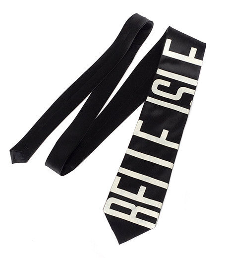 Belle Isle Detroit Necktie, from our series of Detroit neighborhood and landmark-specific neckties. Our beloved Belle Isle is the largest island city park in the United States. From afar, you can see a bold geometric print - but at closer look "Belle Isle" is revealed.