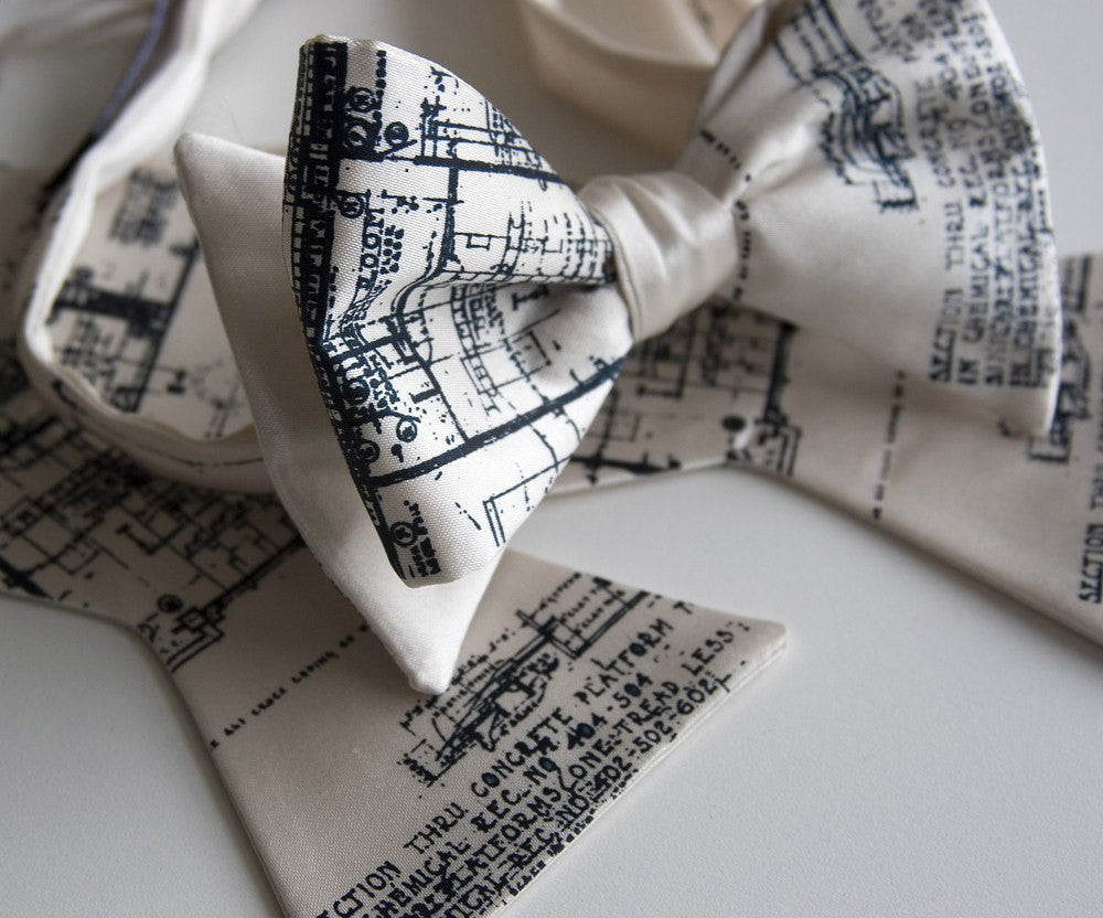 Cass Technical High School Blueprint Bow Tie. Illustration from original 1917 blueprints. We've digitally restored photos of the original prints to minimize creases and water damage.