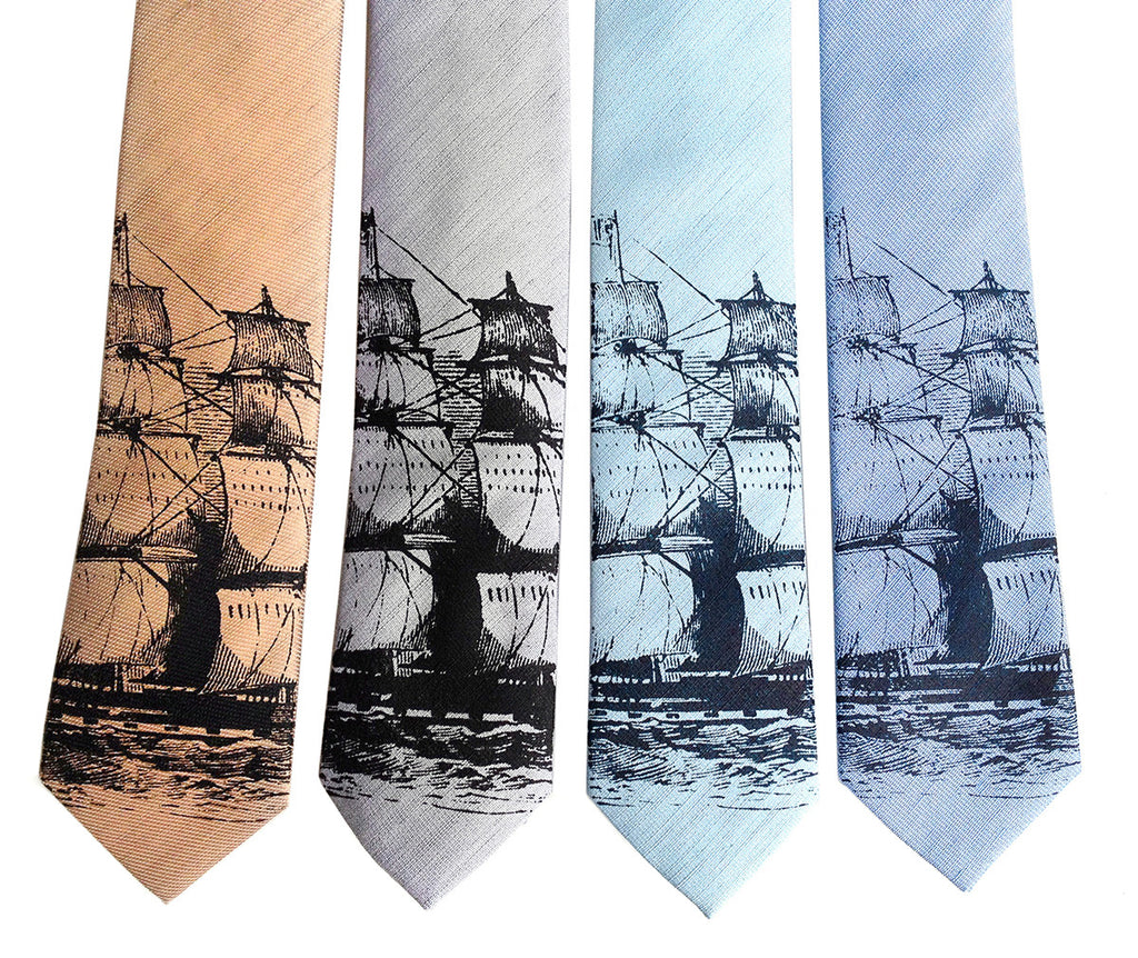 You can see all possible tie graphics right here. We strongly recommend you choose one of our more bold, less detailed and less delicate prints for this linen fabric as the tie has its own texture that can compete with more subtle designs. A contrasty printing ink color is also suggested. Any questions about what designs and print colors work best, please don't hesitate to contact us!