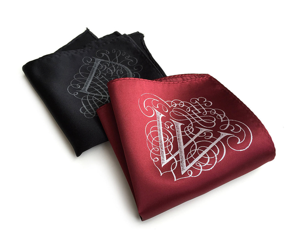 Initial Pocket Square, Personalized Single Letter Filigree Font Hanky. Rock one by its lonesome or coordinate with our AlphabeTIES necktie line. It may perhaps be the worst pun ever - but is surely a perfect solution for wedding parties and keeping it personal!