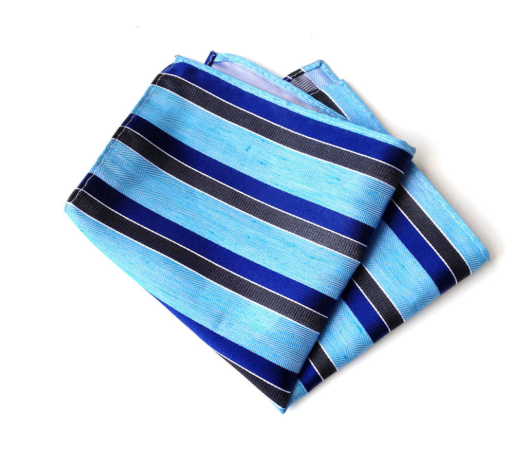 Blue Striped Linen Pocket Square. "Atwater" woven silk blend.