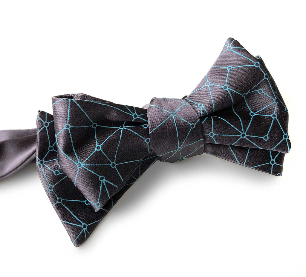 Blockchain Bow Tie, Decentralized Distributed Network Visualization Tie. By storing data across its network, the blockchain eliminates the risks that come with data being held centrally - and its geometric pattern visualization on a tie looks pretty amaze too!
