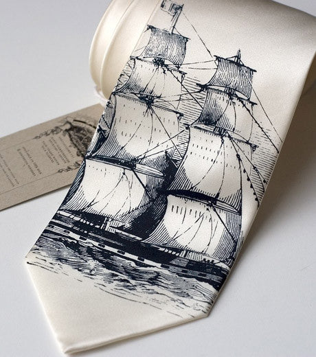 Clipper Ship Necktie. Hey captain! An intricate ship engraving sails across the bottom of this tie. Clippers were named for their speed and relatively short lifespan - live fast, die young!