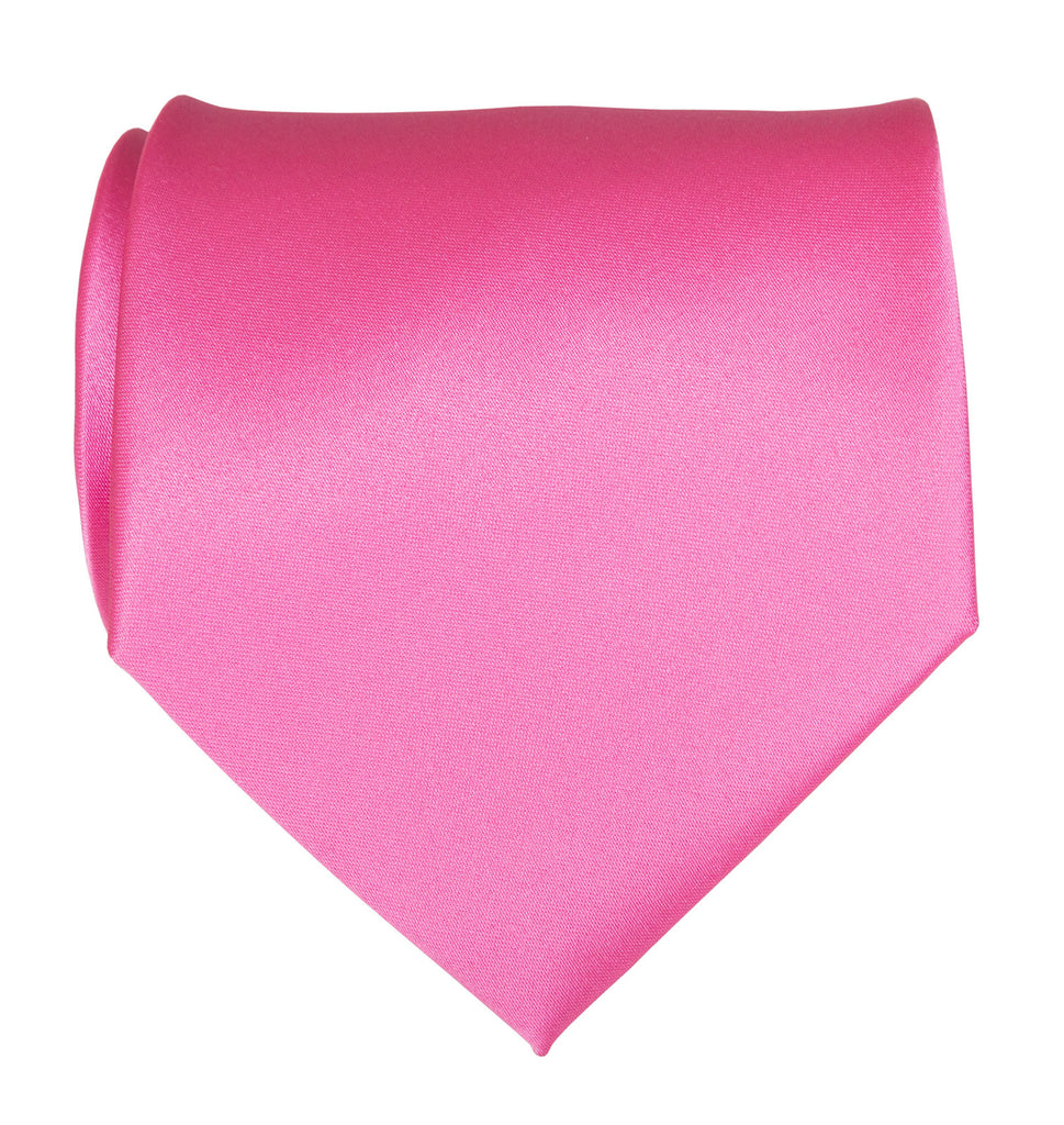 Hot Pink Necktie: Solid Color Satin Finish Tie, No Print. Perfect for any formal occasion, or for when you need a plain, hot pink necktie in your wardrobe. How can this possibly be hard to find? (Well it is.) But fear not, because we have it! Ties are bias cut, hand rolled, and hand sewn with a hidden slip stitch, ensuring a perfect knot every time.