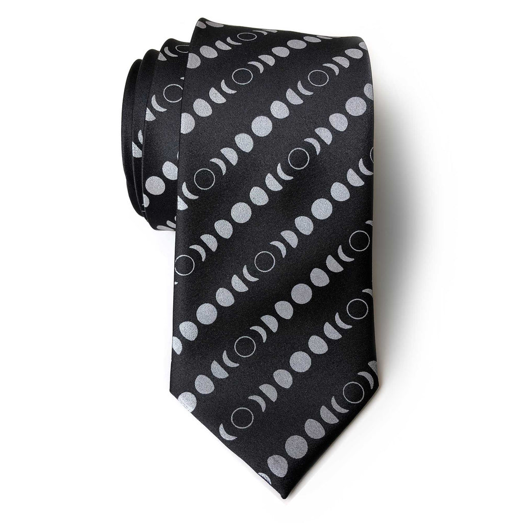 Moon Phases Necktie, Lunar Calendar Print Tie