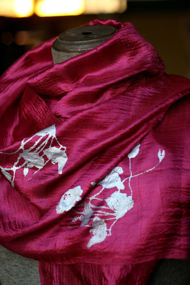 We are discontinuing our line of silk scarves and are sold out or low on most of the colors. But we can still print our scarf designs on what's left!